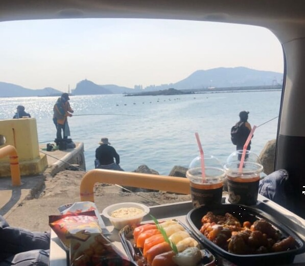- 바다를 마주한 차 안에서 커피 한 잔과 함께 감성 충전