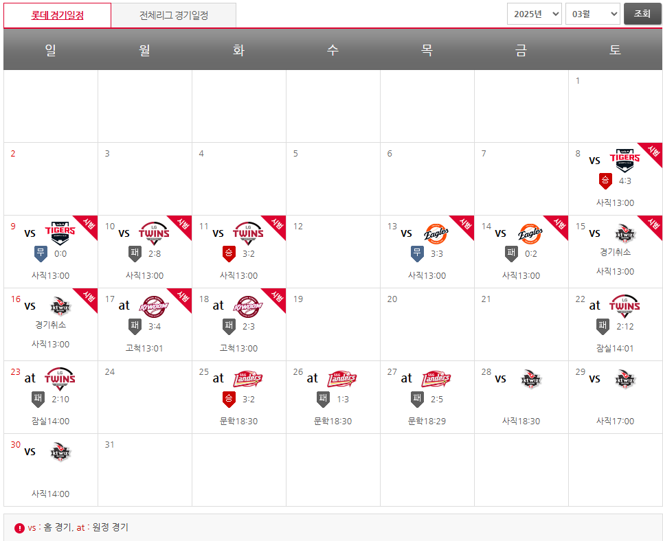 - 상대 팀: SSG 랜더스 (예정)