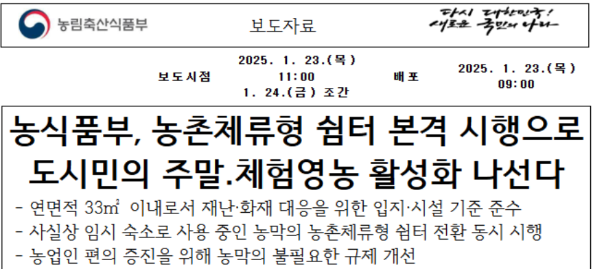 - 농촌체류형 쉼터란? 새 제도, 새 기회