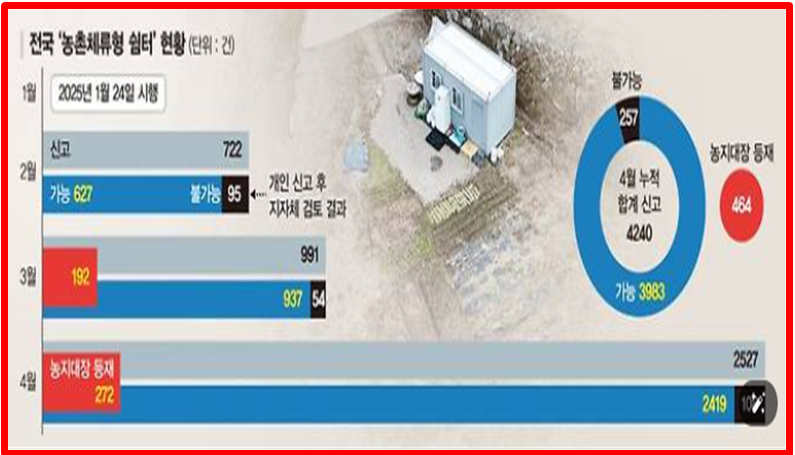 기존 농지는 숙박용도로 쓸 수 없었지만, 이 제도 덕분에 도시에서 주 4일, 시골에서 주 3일을 보내는 라이프스타일이 가능해졌습니다. 이러한 변화는 단순한 농지 활용을 넘어, 지방 인구유입, 체류형 농업 체험, 농촌 관광 자산화라는 다층적 효과를 낳고 있습니다.