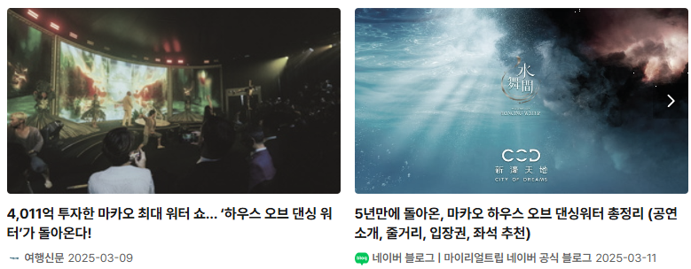 마카오의 대표적인 랜드마크 공연인 '하우스 오브 댄싱 워터(The House of Dancing Water)'가 2020년 코로나19로 인해 중단된 후, 5년 만에 재개장을 확정했다. 2025년 5월 9일부터 새롭게 막을 올렸으며, 더욱 화려하고 업그레이드된 모습으로 관객들을 맞이한다고 한다. 단순 재개가 아닌, 완전히 리뉴얼된 퍼포먼스와 무대 장비가 적용되어 ‘이전보다 더 강력한 감동’을 선사합니다.