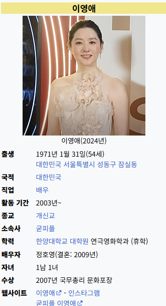 - 🔗 이영애 프로필 - 나무위키: https://ko.wikipedia.org/wiki/%EC%9D%B4%EC%98%81%EC%95%A0