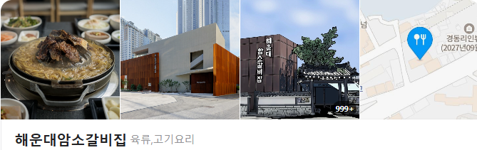 - 해운대 암소갈비 → 개미집 → 해운대 삼계탕