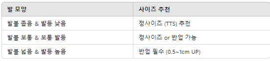 - 발볼이 넓다면 한 사이즈 크게 가는 것도 괜찮은 선택