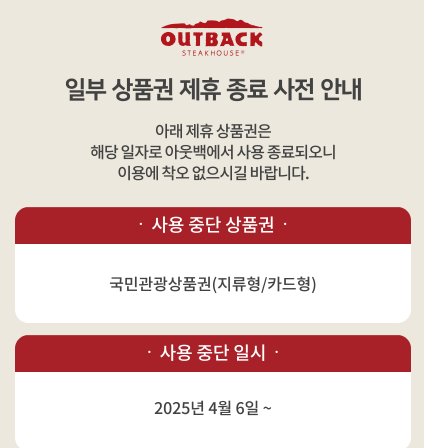 - 🏆 아웃백 VIP 멤버십: 누적 방문 시 추가 할인 및 특별 메뉴 제공