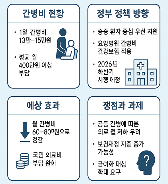 - 이번 급여화는 요양병원 중증환자의 간병비 구조를 ‘가족 100% 부담’에서 ‘사회적 분담’으로 전환하려는 첫 대형 정책입니다.
