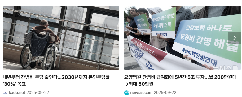 - 초고령사회 진입과 함께 간병 파산/간병 살인 사례가 사회문제로 대두. 요양병원 간병비는 비급여라 전액 본인부담이었음. 다음