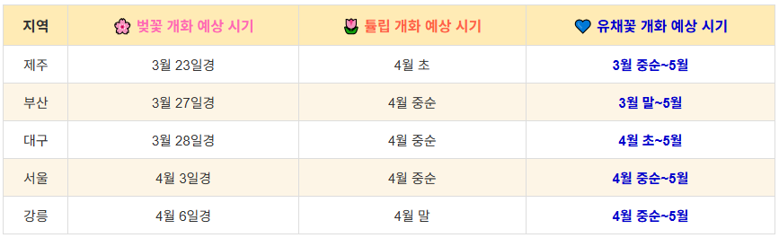 봄꽃은 지역별로 개화 시기가 다르므로 여행 일정을 맞추는 게 중요합니다! 🗓️