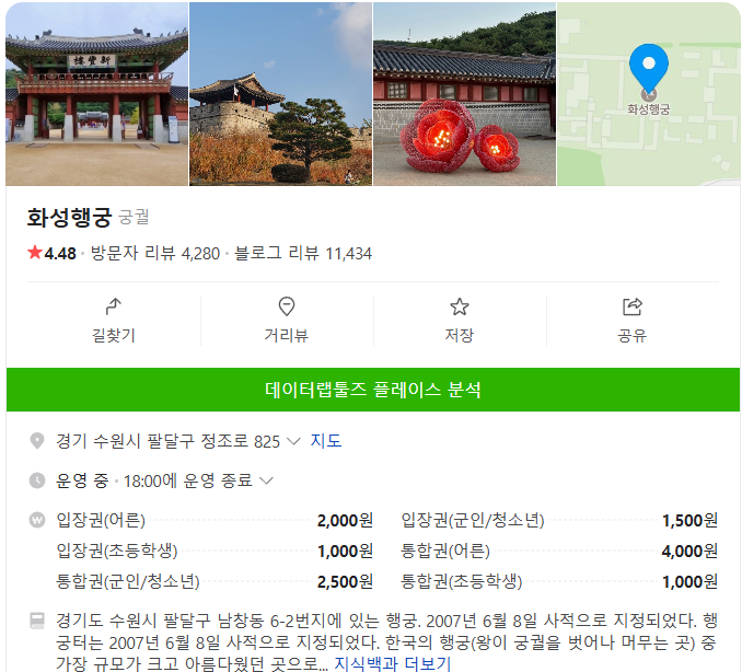 - 화성행궁 주차장: 1시간 2,000원 (추가 10분당 300원)