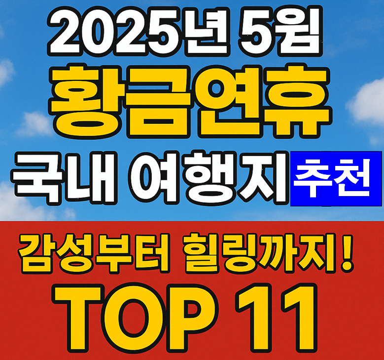 2025년 5월 황금연휴엔 어디로 떠날까? 단 하루 연차로 5일 꿀연휴를 즐길 수 있는 국내 여행지 11곳을 소개합니다. 지금 예약하면 늦지 않아요!