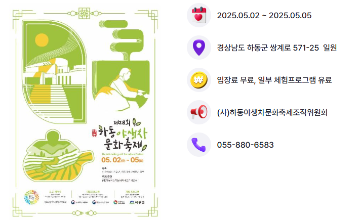 - 주요 프로그램: 다도 체험, 야생차 시음, 전통 문화 공연